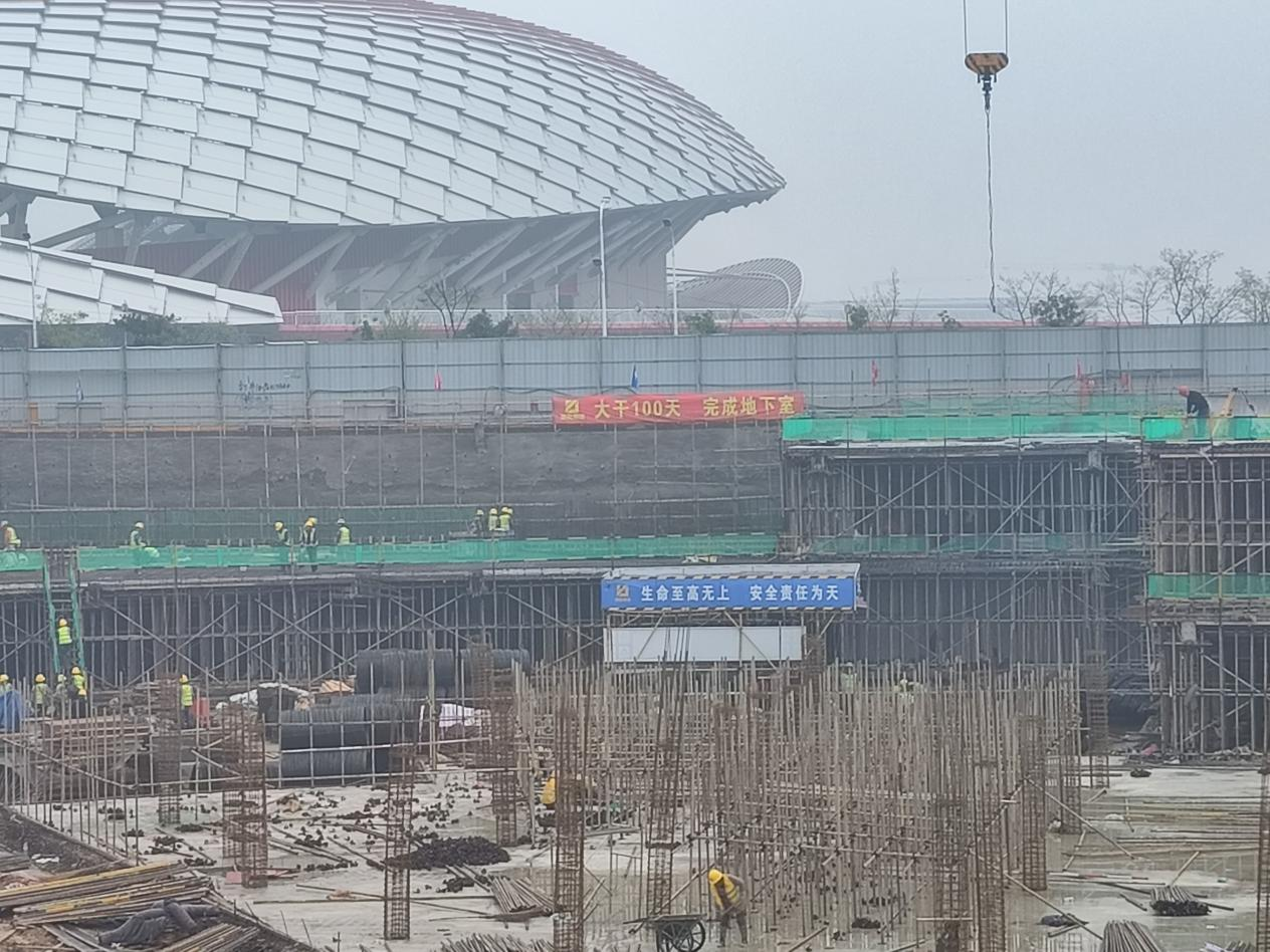 該項目年前因環(huán)保督查、大氣污染治理、雨雪天氣和馬拉松活動影響等原因,導(dǎo)致施工現(xiàn)場多次停工,土方外運困難,造成工程進(jìn)度嚴(yán)重滯后。年后,城開集團(tuán)組織召開3月份復(fù)工復(fù)產(chǎn)工作會議,為了把耽誤的時間搶回來,要求掀起大干高潮——“大干一百天,完成地下室”,營造大干的氛圍。