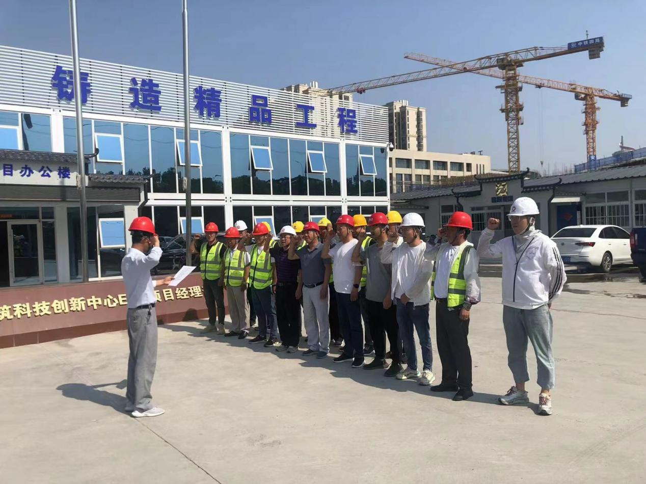 活動(dòng)現(xiàn)場(chǎng),所有參建單位現(xiàn)場(chǎng)管理人員在安全生產(chǎn)月主題標(biāo)語條幅上簽字,施工總承包單位項(xiàng)目負(fù)責(zé)人帶領(lǐng)所有參建單位現(xiàn)場(chǎng)管理人員進(jìn)行宣誓。